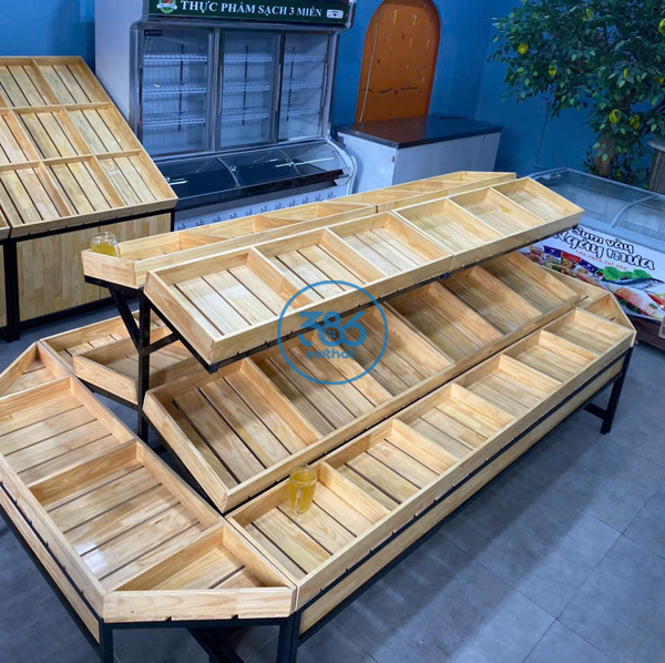 Với thiết kế hình bát giác độc đáo, kệ hoa quả không chỉ giúp trưng bày sản phẩm một cách khoa học, bắt mắt mà còn tối ưu không gian lưu trữ. Thiết kế này cho phép bạn trưng bày được nhiều loại rau củ quả khác nhau trên cùng một kệ, giúp tiết kiệm diện tích cửa hàng, đặc biệt hữu ích cho những cửa hàng có diện tích vừa phải.